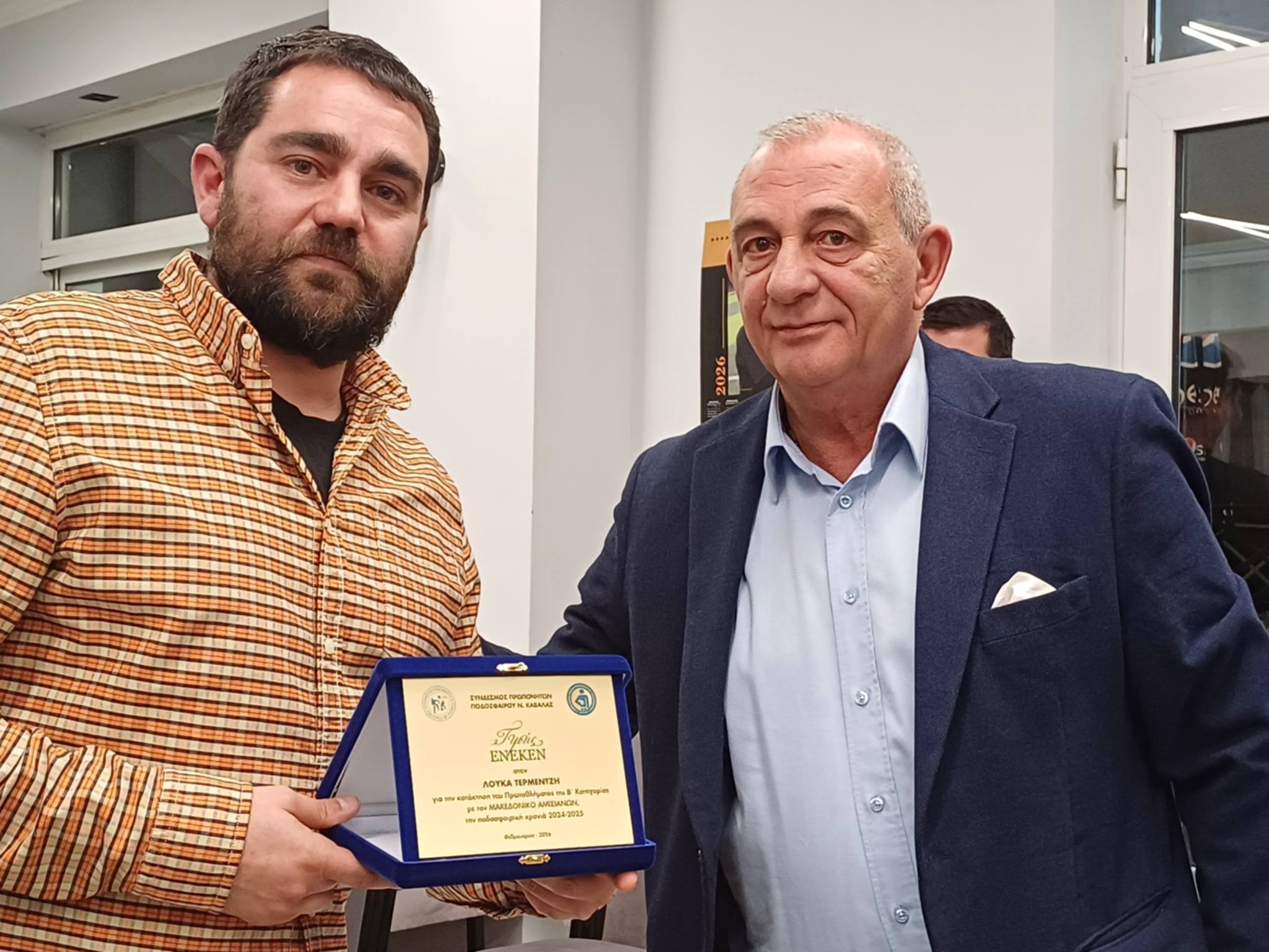 Η Εκτελεστική Επιτροπή του συνδέσμου μας συγχαίρει θερμά το ποδοσφαιρικό τμήμα του ΑΟ Καβάλας για την άνοδο στη Super League 2. Συγχαίρει ιδιαίτερα και τα δικά της παιδιά, μέλη του συνδέσμου μας τους κ.κ. Αγγελίδη Γεώργιο, Σουμουλίδη Νικόλαο και Κασκαμπανιώτη Ιωάννη που αποτέλεσαν κομμάτι αυτής της επιτυχίας.